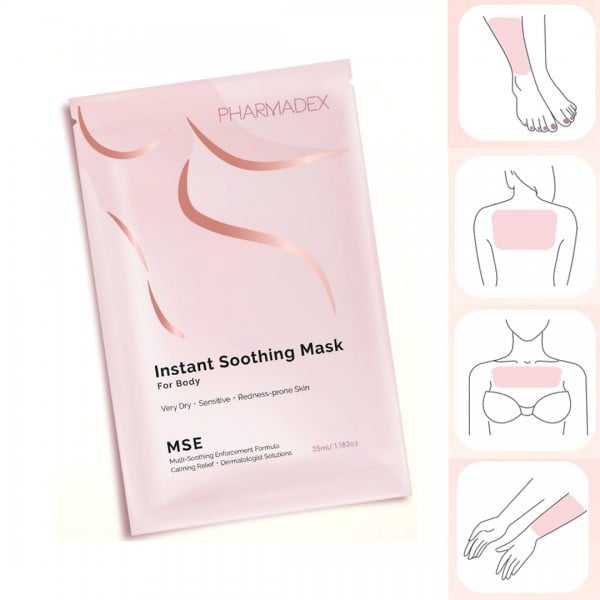 Pharmadex 退紅舒緩身體背膜專為敏感、泛紅及容易受刺激的肌膚設計,蘊含專利 MSE™ 鎮靜舒緩配方,能快速減輕皮膚不適,有效退紅、消腫並舒緩因外界環境或醫美療程後造成的敏感問題。
